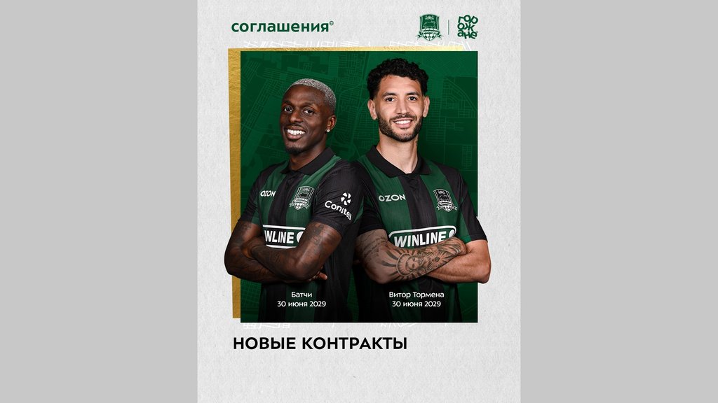 Пресс-служба «Краснодара» объявила о подписании новых трудовых соглашений с Жоау Батчи и Витором Торменой.