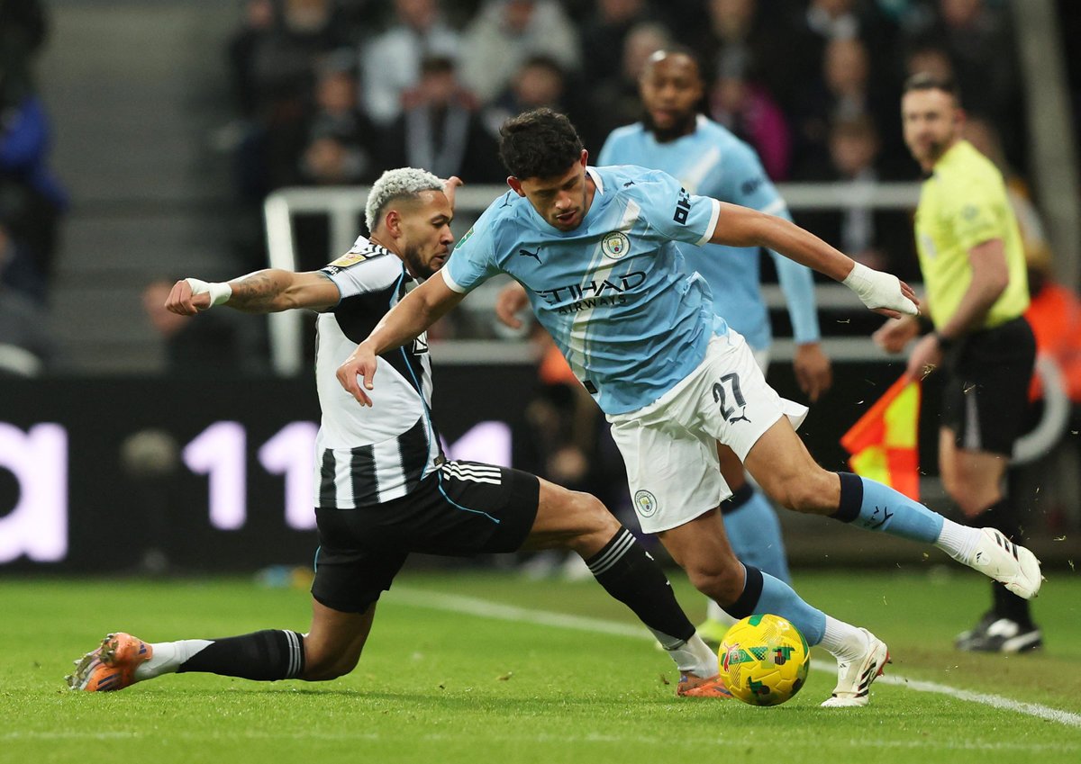«Манчестер Сити» выиграл у «Ньюкасла» в первом матче ½ финала Кубка английской лиги — 2:0. Игра прошла на стадионе «Сент Джеймс Парк» в Ньюкасле.