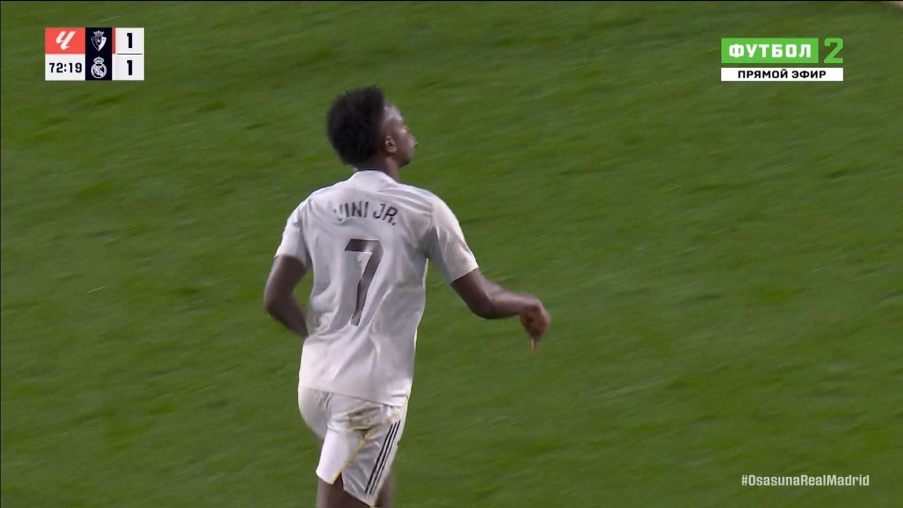 Винисиус указал на свое имя, а затем на поле, забив «Осасуне»