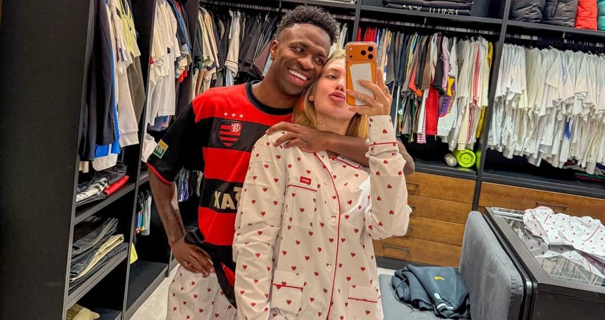 Вингер «Реала» Винисиус Жуниор и его девушка Вирджиния Фонсека сделали совместные фотографии в пижаме.